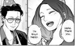 The running joke of the manga is that he used to be a high-ranking yakuza enforcer who’s having trouble adapting to civilian life. Hence her shocked face when she saw the decorations and the creepy way he sang “Happy Birthday”; it’s a traditional birthday celebration for your oyabun, not your wife.