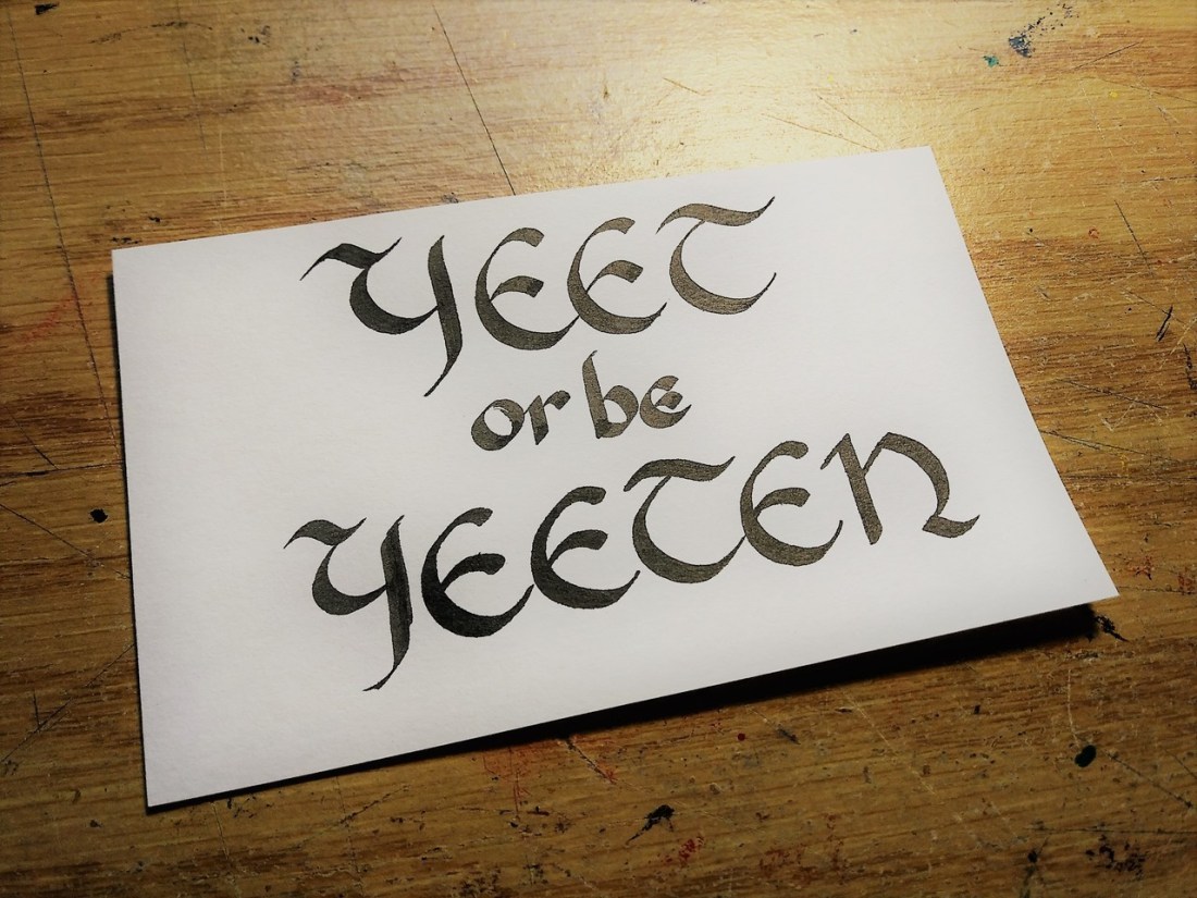 glubglubshrg Uncategorized October 12, 2018December 6, 2018 1 Minute shiftingpath: theshitpostcalligrapher: req’d by @aidennestorm it’s a yeet or be yeeten world out there bro Share this: Share on X (Opens in new window) X Share on Facebook (Opens in new window) Facebook Like Loading... Related Published by glubglubshrg View all posts by glubglubshrg Published October 12, 2018December 6, 2018