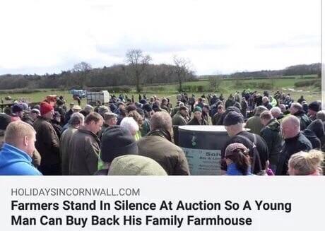 This is the kind of shit people did back in the Depression. When mortgage holds would try to sell a farm, everyone in the community showed up and strong armed any serious bidders away. They had the ‘penny auction’ tactic, where farmers would bid absurdly small amounts on farm equipment and land (while glaring intensely) until the auctioneer realized they needed to take what they were getting, or get their legs broken. This kind of stuff saved so many farms, they’d buy off 500+ dollar mortgages (which were huge amounts back then) for less than 100 dollars and give it back to the farm owners.